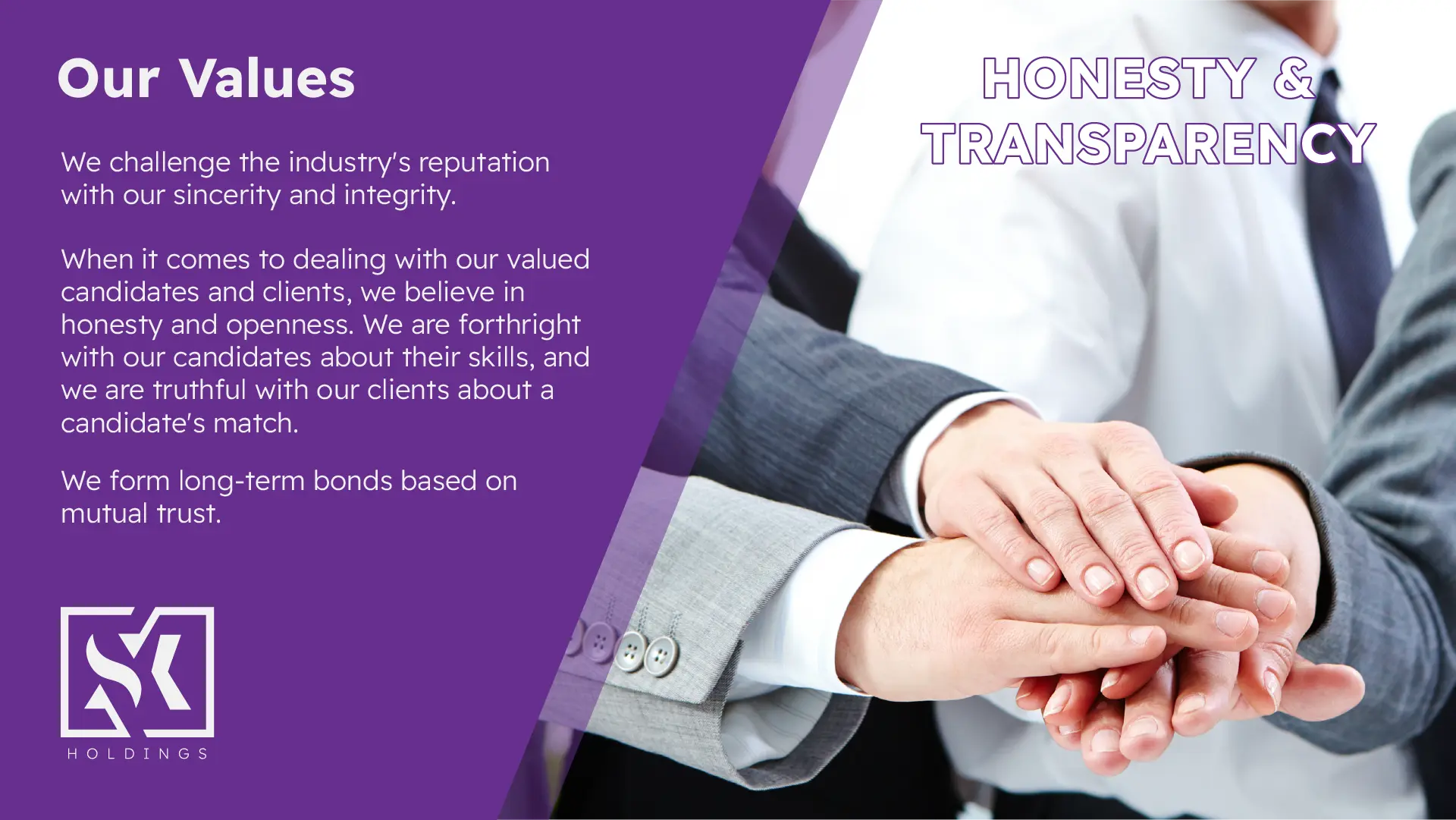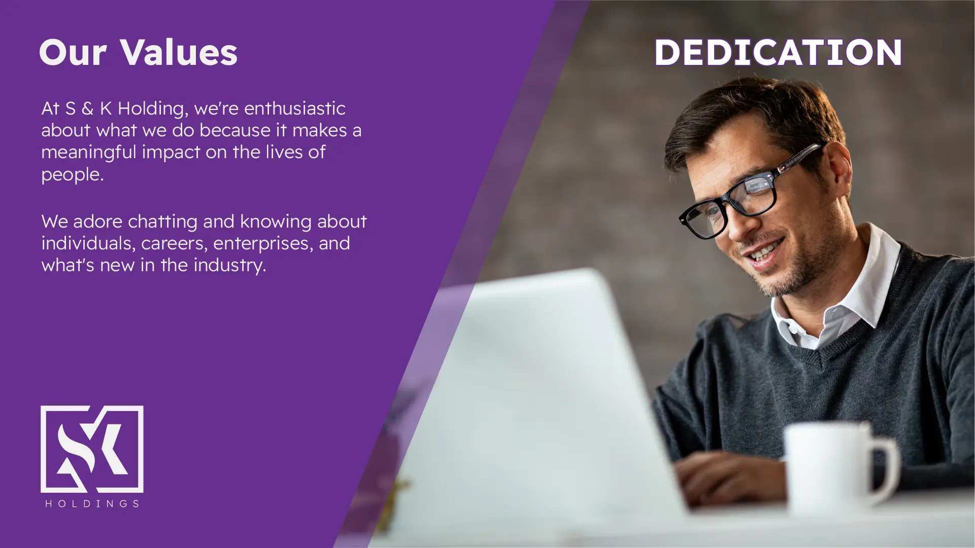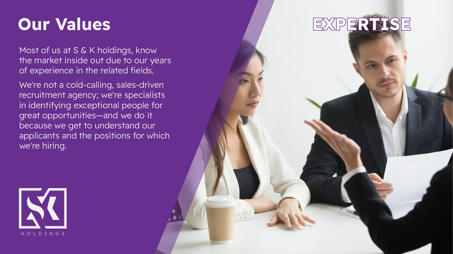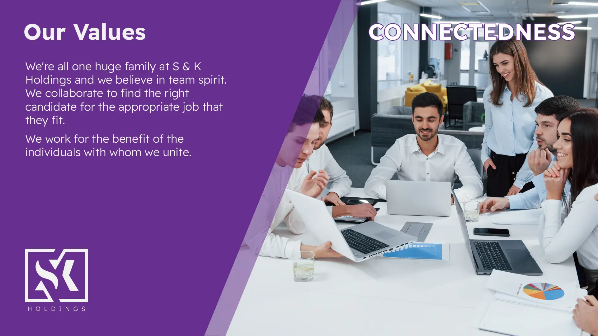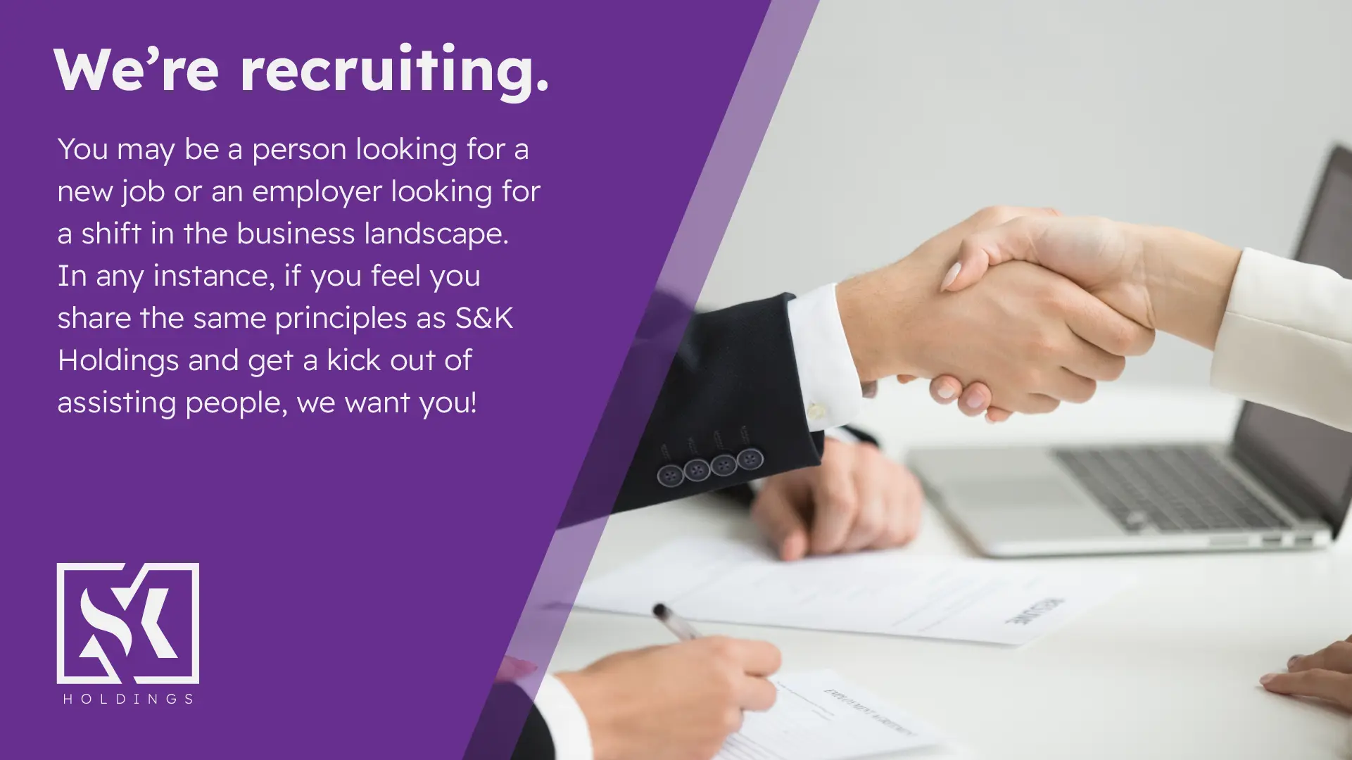 We are challenging the recruitment industry’s reputation for bad practice and poor service. And are dedicated to exemplifying S&K Holdings as a company that genuinely looks after its staff. At S&K Holdings, we desire to attain one simple goal to make people happy in their jobs. Their happiness motivates us to do more and better the next day.